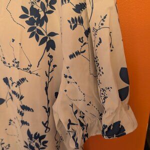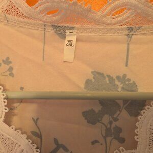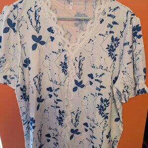 Womens Blue & White Floral Blouse, Lace Trim, Size 2XL, Cut Small, New