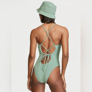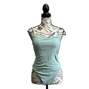 Get ready to turn heads with this stunning mint green bodysuit from Victoria's Secret! This one-piece swimsuit is made from lightweight and breathable polyester terry cloth material, and features a lace-up design that adds a touch of elegance. The compression level is mild, with targeted compression areas at the chest and waist, making it perfect for a day at the beach or a night out on the town.
