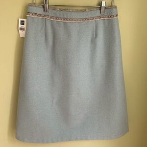 NWT Gap pale blue a line skirt size 2. Wool blend w/nordic looking trim. Lined!