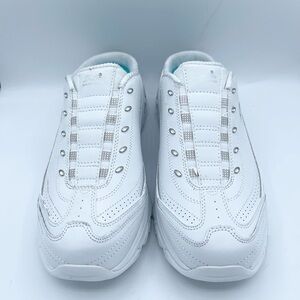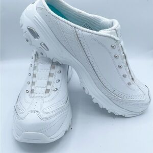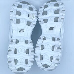 Stylish white Skechers sneakers. Perforated design. Slip-on style. Size 11W
