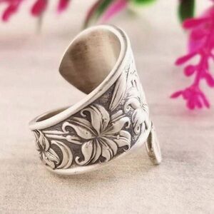 Vintage Spoon Ring - Flower Accent Detail
