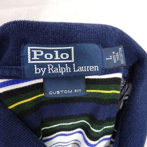 Polo by Ralph Lauren Men Size L Custom Fit Striped Polo Shirt Blue Green Logo