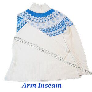 Tahari Fair Isle Nordic Mockneck Ivory & Blue Sweater Women's Small - NWOT