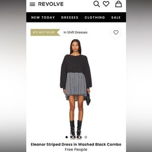 Free People Black and Gray Long Sleeve Dress