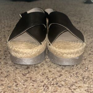 Paloma Barcelò Anambei Lory sandal for women, in shiny leather, withadjustable ankle strap with maxi covered buckle, equipped with a napasoft wedge with details in raffia and light rubber, the sandal that reflects the new standards of contemporary elegance, fcovered in leather and with a non-slip rubber sole, heel height: 6 cm. Black. Wear it to appreciate its comfort and elegance.