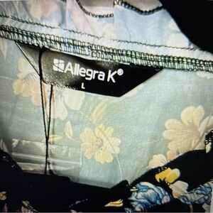 Allegra K Womens Large Blouse Ruffled Short Sleeve Floral Mock Neck Summer Top NWT