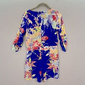 Yumi Kim - women’s 100% silk Liz Romper blue zean floral print 3/4 sleeve SZ XS