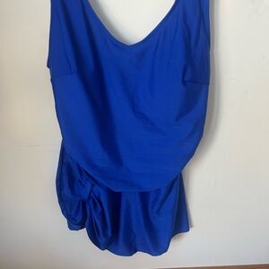 Stylish Osprey daylite tote bag/daypack blue with grey bottom and green handles. Front pocket and zip, back pocket and luggage sleeve, inside pockets and zips. 2 mesh side pockets. Full zip top, excellent gently used condition.