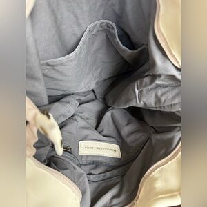 Cream leather Monserat De Lucca handbag. Zip closure. Extra crossbody strap. Interior zip pocket plus two cell phone pockets. In perfect shape like new. Barely used.