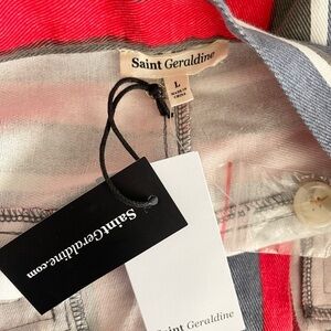 SAINT GERALDINE (NWT) Women’s Blue/Red/Gray Alexa Endless Stripe Shorts-Size L
