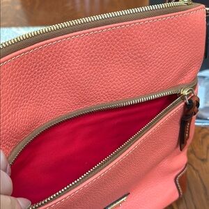 Dooney & Bourke Pink and Brown Crossbody Bag with Pebbled Leather