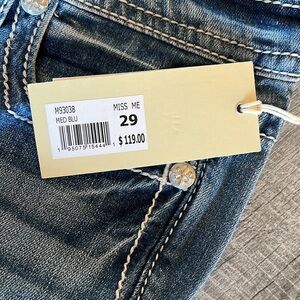 NWT MISS ME Blue Flared Women's Jeans. Mid-rise boot womens size 29x34, slim fit.