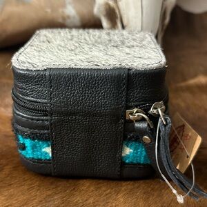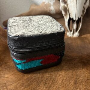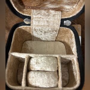 âïž Velvet inside with Cowhide on top -take your necklaces so they donât get tangled your bracelets earrings and any other jewelry you like to take thatâs all in one spot and youâre not looking for it and number one is it doesnât get tangled!