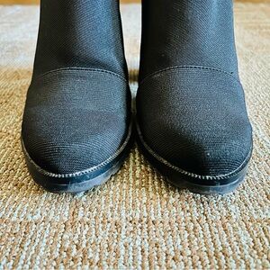 Ellen Tracy Black Stretch Textile Minnie Lug Chunky Sole Shooties Boots, size 8M