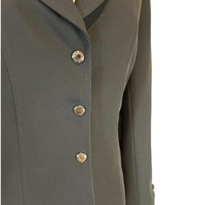 Keywords: black blazer, professional jacket, work blazer, silver buttons, tailored blazer, office wear, business attire, formal jacket, career wear, women suit jacket