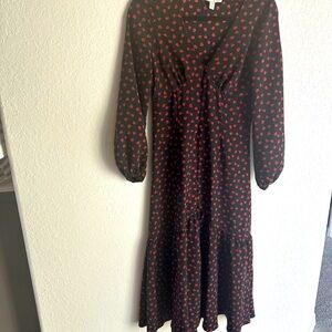 Topshop Red V-Neck Bishop Sleeve Sundress