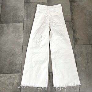 Zara the marine straight wide leg white denim high rise jeans raw hem 2. Preloved and in great condition. Material tag removed but is thick stiff cotton with some minor stretch. Waist flat is 13 in. Rise is 12 in. Inseam is 27 in.