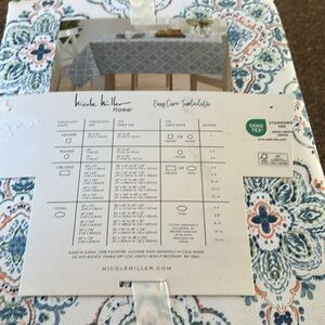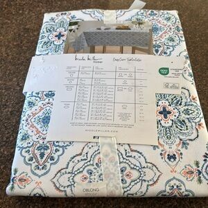 NICOLE MILLER HOME EASY CARE TABLECLOTH WHITE BLUE ORANGE MEDALLIONS?-60”x106”
