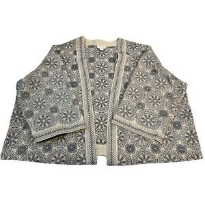 Women’s Large (Petite) Pure Jill Blue/White Embroidered Kimono Cardigan