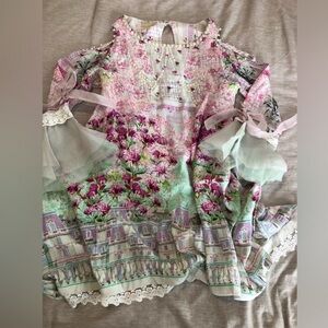 Gorgeous silk tunic with pearl details! Size XS - will fit someone with a smaller chest