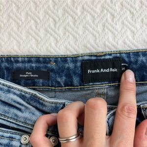 **Keywords:** Frank and Oak, Patti Straight Jeans, Size 25, Dark Wash, Stretch Denim, High-Rise, Straight Leg, Mom Jeans, Comfortable, Loose Fit, Pockets, Fall, Winter, Spring, Frank & oak