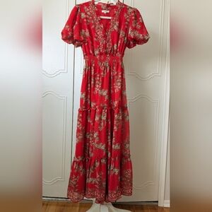 Max Studio Red Puff Sleeve Maxi Sundress With Ruffle For Special Occasion SzXS