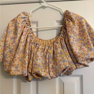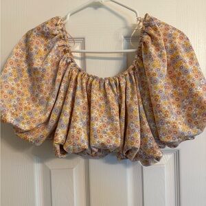 Chic and stylish floral puff sleeve crop top, perfect for any casual outing. Features a beautiful blend of colors for a vibrant look.