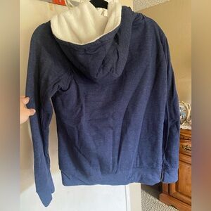 Navy hoodie with Chargers Football logo. Features a zip-up front and hood. Fleece inside. Super soft and comfortable