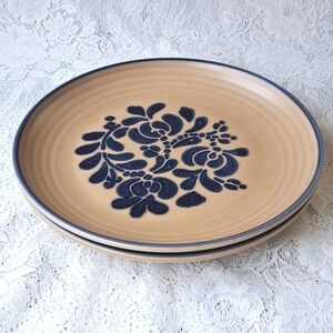 Two vintage Pfaltzgraff solid stoneware dinner plates. Each has maintained a hairline crack.