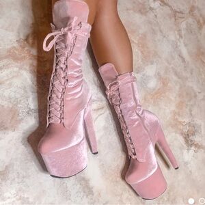 Luxury pole dancing and exotic dance footwear brand Hella Heels, with more cushioning and softer more comfortable straps than Pleaser.