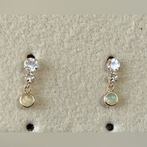 🚫SOLD🚫 18K Solid Gold Moonstone and Topaz Dangle Earrings Dainty