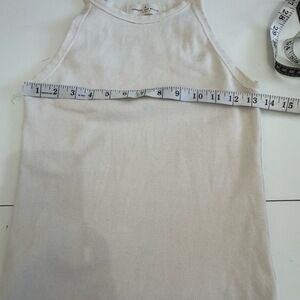 Elevate your casual style with this chic tank top from Imogene And Willie. Its racerback design and sleeveless cut make it a versatile choice for any relaxed outing. Some light spotting flaws on back bottom corner as shown in last photo.