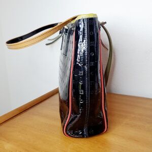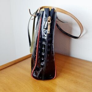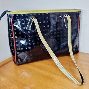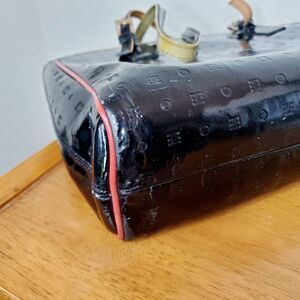 VTG ARCADIA Black Gloss TOTE BAG SHOULDER PURSE PATENT LEATHER Travel Bag