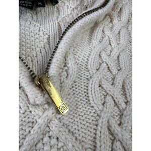 RALPH LAUREN Ivory Cable Knit Women Sweater 3/4 Zip Size XL Academia Preppy
