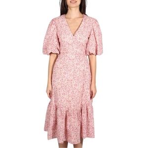 dress has puff sleeves, floaty tiers and adjustable drawstrings at the waist (cinch for a little more definition-or untie after a particularly delicious meal).