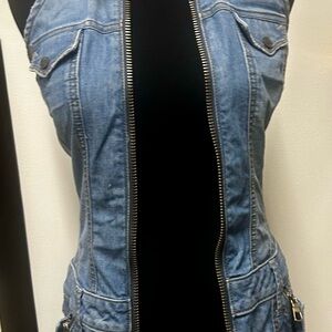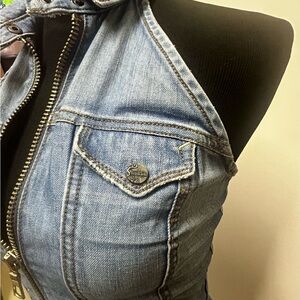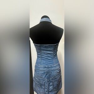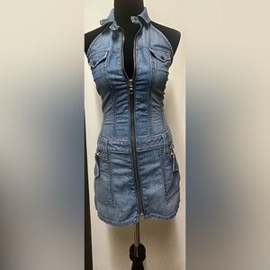 Frankie B. Denim Jean dress , zips up , pockets on side and on the butt area . Only worn twice , great condition. No holes, tears or stains . Bust:33 1/4in