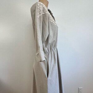 Vintage Piaf Women’s Medium Embroidered Cottagecore Button down Midi Dress Lace