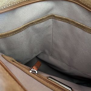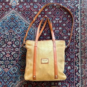 Valentina Gold Metallic tote, leather trim, crossbody option, gold hardw…