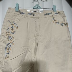 Talbots cream stretch Capri with beaded embroidery