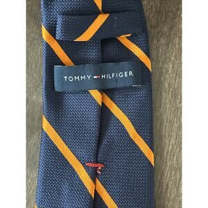 TOMMY HILFIGER STRIPED REPP TIE BLUE ORANGE MENS NECKTIE 100% SILK
