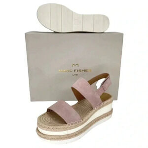 Marc Fisher LTD Platform Sandals 9M Gallia Pink Suede Jute Wrapped Slingback