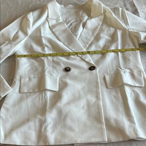 This elegant white blazer is perfect for any occasion. Its sleek design offers a sophisticated look.