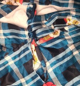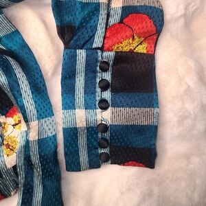 This elegant blouse by Diane Von Furstenberg features a sophisticated wrap design with a tie front, accentuated by a notched collar. The striking blue and black color palette adds a touch of modernity, while the long sleeves offer a classic silhouette. Perfect for making a statement, this top effortlessly combines style and comfort.