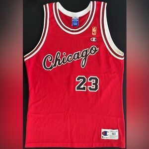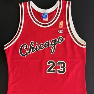 Vintage Champion Michael Jordan Chicago Bulls #23 red cursive rookie throwback jersey