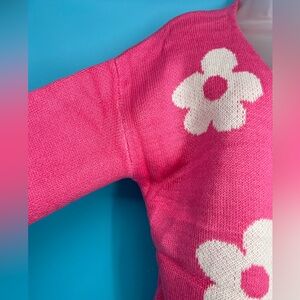 Fun Hot Pink Open Front Cardgian With White Flower Pattern