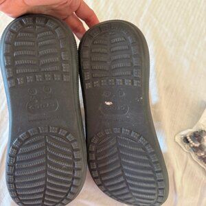 These Black Crocs in size 8 women's are in excellent used condition and come adorned with decorative gems for a touch of glamour. The classic Crocs design offers comfort and versatility, perfect for casual outings or lounging at home. Made from durable material, these Crocs are built to last and provide support for all-day wear. The decorative gems add a fun and stylish element, making these Crocs a unique and eye-catching choice. Whether you're running errands or relaxing, these Black Crocs are sure to elevate your footwear game. Don't miss out on adding these fashionable and comfortable Crocs to your collection!
