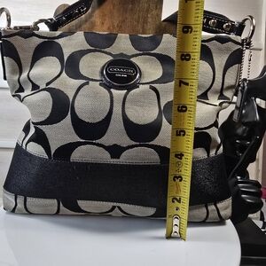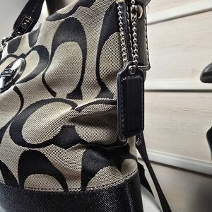 Stylish and versatile Coach crossbody bag & wristlet set featuring Coach signature black and grey design. Perfect for any occasion, it combines elegance with functionality. Perfect size for dinner date, shopping with friends or trip to the casino. This set is in good pre-owned condition, please zoom in to all photos to see the exact items you will receive.