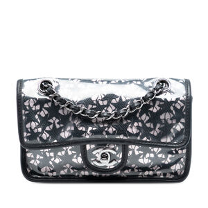 This satchel features a printed leather body, flat leather handles, an adjustable and detachable flat leather strap, an open top, and an interior zip pocket. It carries an AB condition rating.