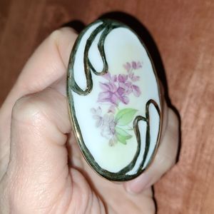 Pretty Vintage Porcelain Oval Brooch with Hand Painted gold trim and vivid purple violets. Good used condition, please see pics. No notable defects. Apprx 1-1/2" x 2-1/2". Floral beauty!
