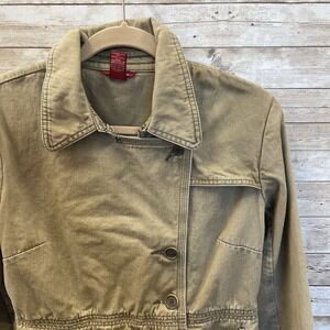 Sundance Womens Size 6 Jacket Safari Military Khaki Green Asymmetrical Button Up